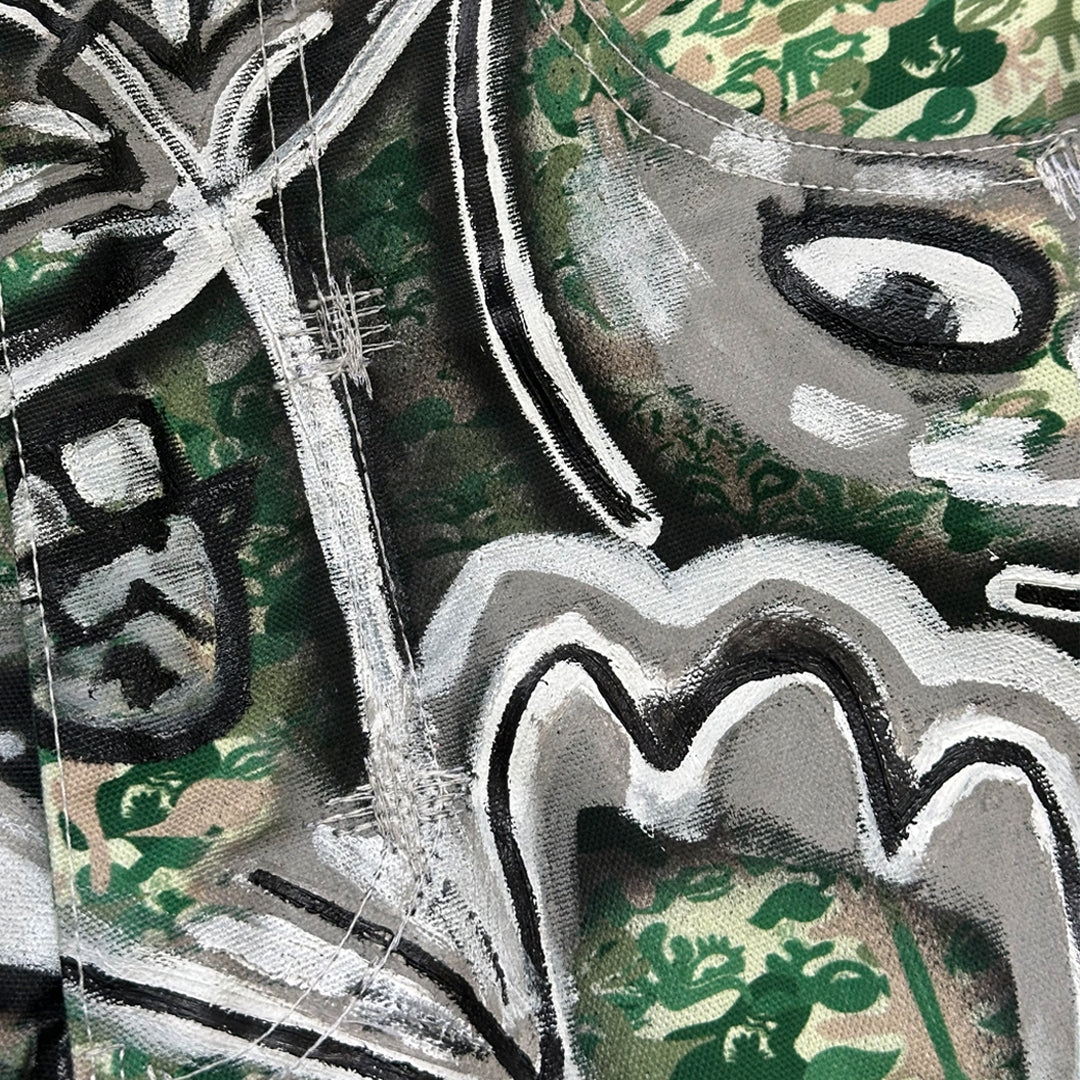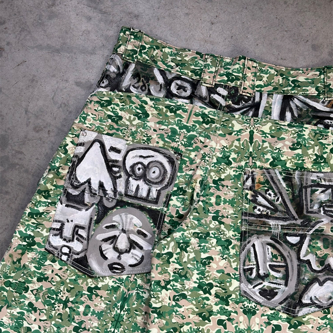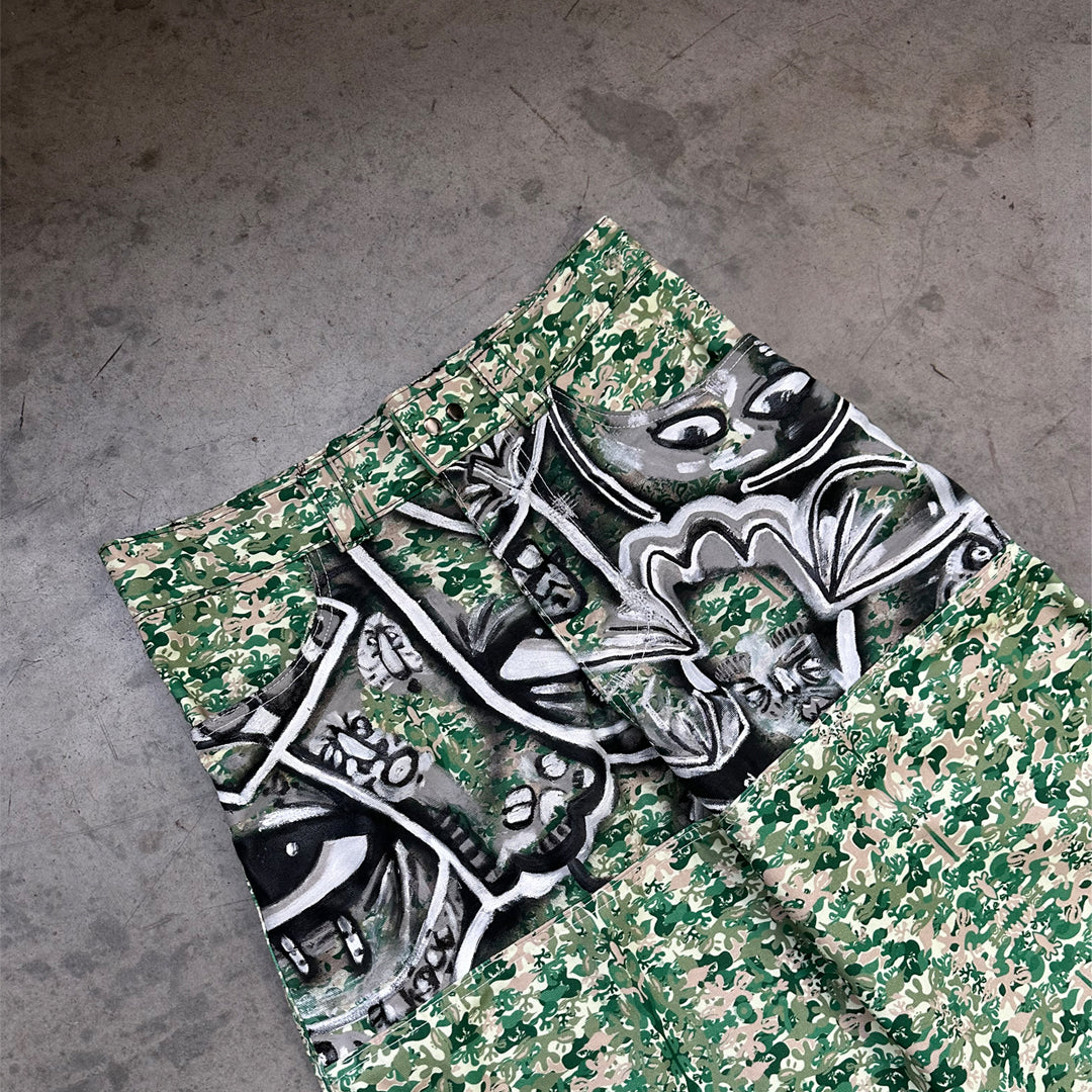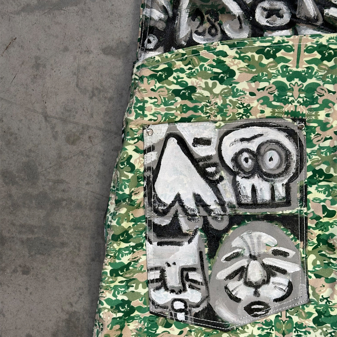 Pantalon entièrement cousu à la main avec détails de peintures créée par Jayjay.