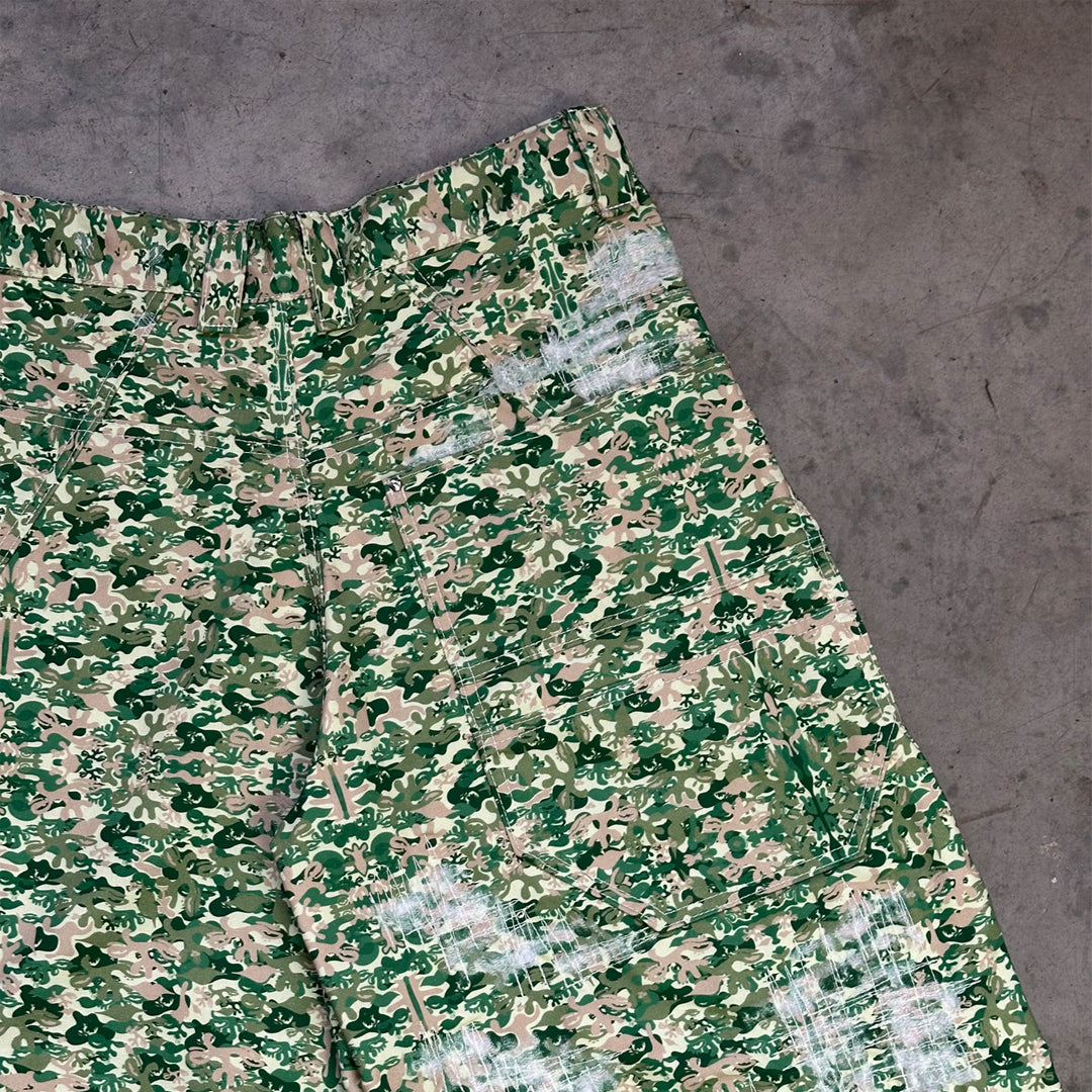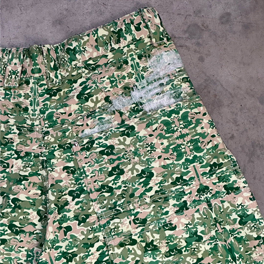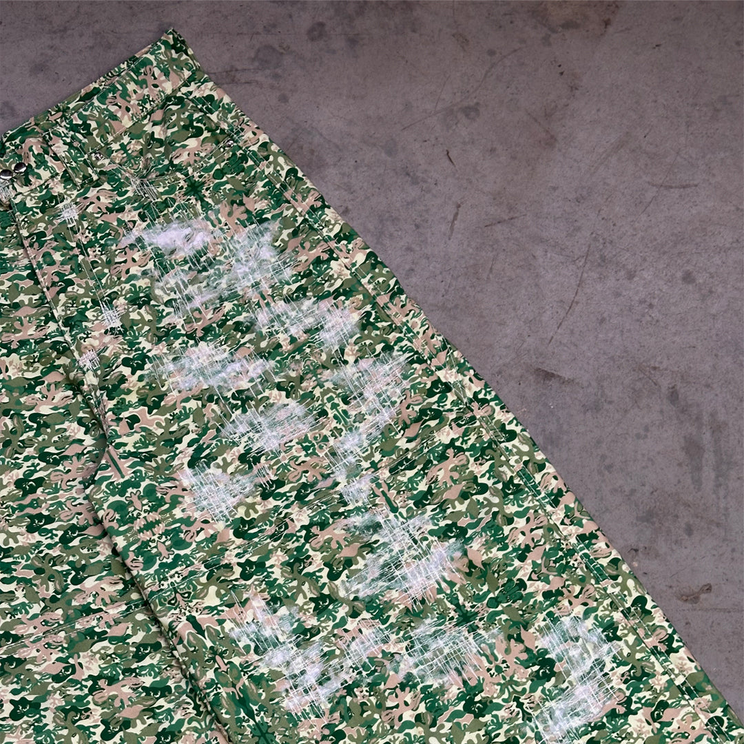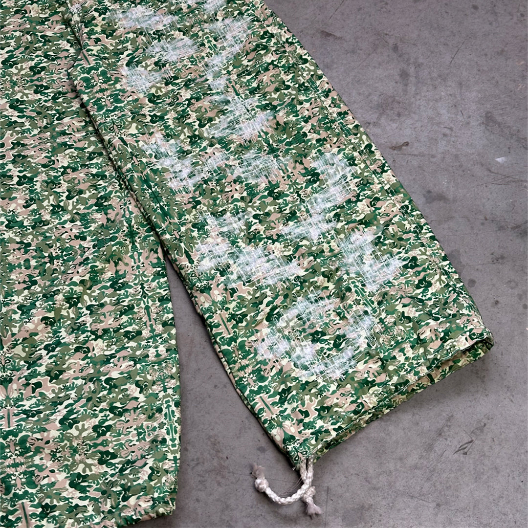 Pantalon entièrement cousu à la main avec détails de textures et déchirures. Lacet pour resserrer le bas du pantalon.